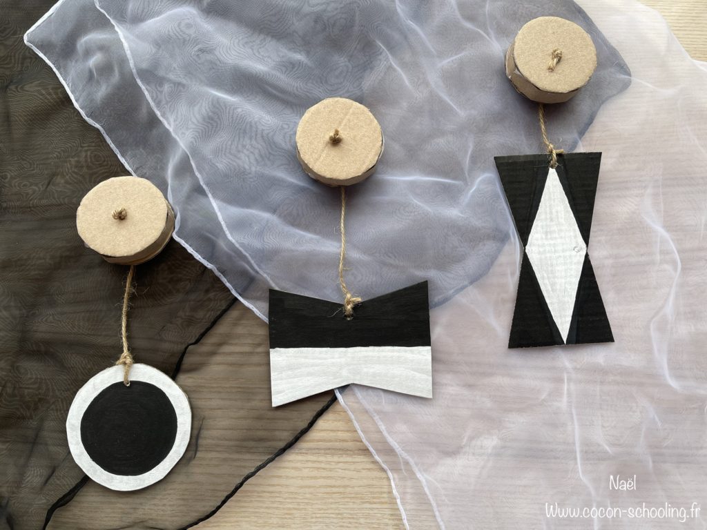 Vous pouvez également retrouver tout l’alphabet. J’ai fait un mobile type Munari DIY pour pouvoir le mettre sur le support que j’avais déjà, mes deux puces l’ont utilisé, j’y tiens beaucoup.