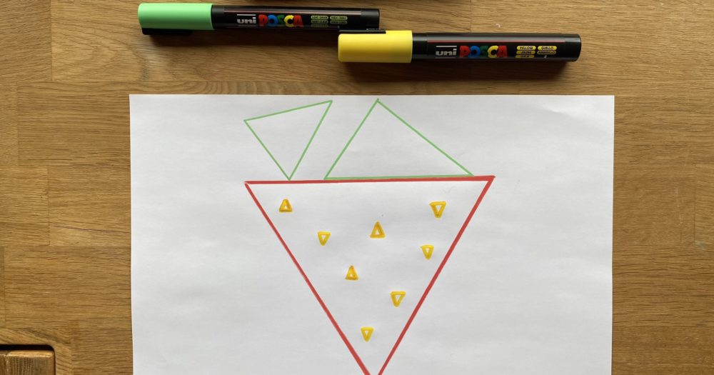 Dans la continuité pédagogique la maitresse nous a demandé de tracer des triangles, du coup j’ai préparé quelques supports. Voici un exercice que vous pouvez faire même avec des bâtons de glace ou des cartons coupés en rectangle à la place des kaplas. Le but est de retrouver ou mettre les kaplas en fonction des trais de couleur.
