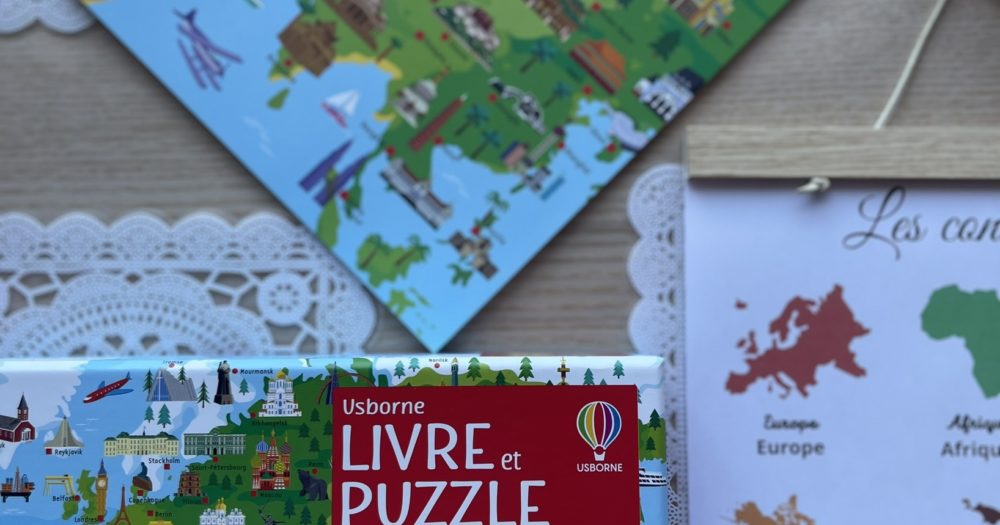 Hello les cocons, nous débutons le thème Géographie, je vous présente l’affiche que j’ai faite en m’inspirant d’idées Google. Cette affiche est dans la salle d’activité et nous accompagnera cette semaine, ainsi que ce grand puzzle de 300 pièces Usborne que les filles vont essayer de faire. Demain je vous montrerai les cartes de nomenclatures sur lesquelles je dois faire quelques ajustements. Tout sera sous le même post. A demain.
