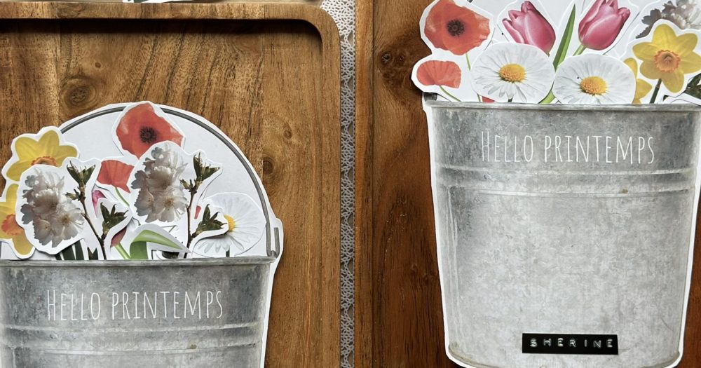 Hello les cocons, l’année dernière nous avions fait une version avec des bottes de pluie. Cette année j’ai proposé aux enfants de mettre les mêmes fleurs que pour les bottes mais dans un joli seau. Vous trouverez plus bas le pdf de l’année dernière et un autre avec le seau de cette année (d’ailleurs j’ai ajouté un seau en bois aussi que je préférais mais les filles aimaient mieux celui en fer). N’hésitez pas à aller voir sur insta, J’ai mis en story permanente notre organisation bibliothèque si ça peut vous intéresser. A bientôt. Tatiana.