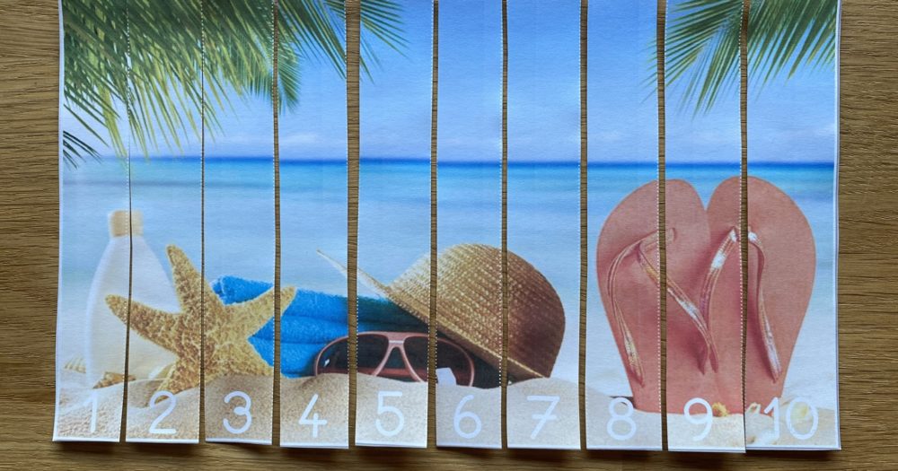 Voici donc un atelier de mise en paire que j’ai fait pour Maya, pour le réaliser j’ai imprimé le pdf qui était pour le tracé à la règle que j’ai découpé. Puis j’ai collé avec de la colle blanche les tongs sur des bâtons de glace.