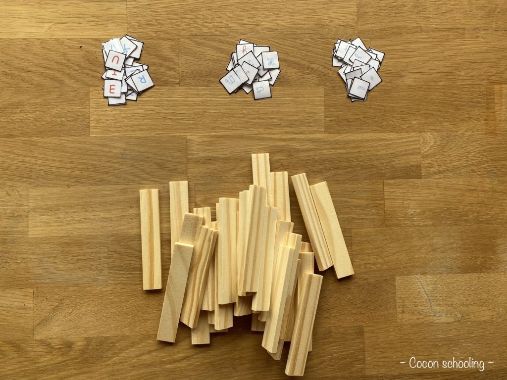 Aujourd’hui j’ai fait un fichier pour pouvoir faire pas mal d’activités avec les kaplas, j’ai fait exactement la même taille ce qui donne un bon rendu. Les étiquettes sont fixées avec de la pâte à fixe le temps de l’activité.