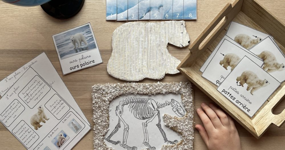 Lundi. Zoom sur l’ours polaire. Nous attaquons un thème qui peut être long ou court en fonction des envies de ma grande. On part sur une semaine et on verra.