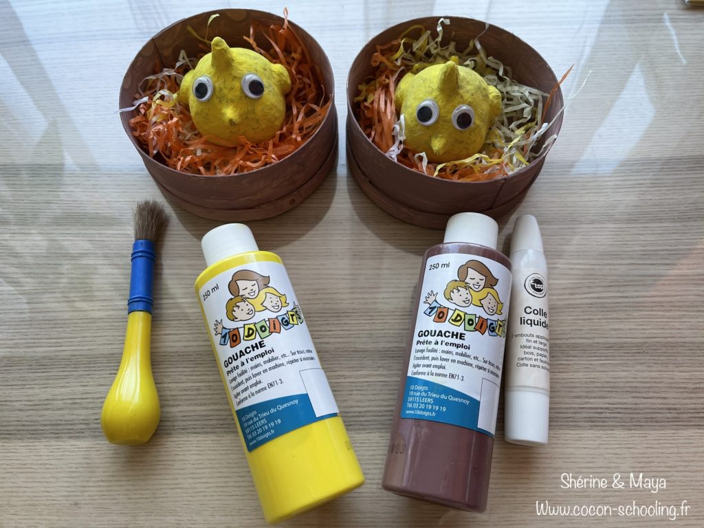 les deux poussins dans leurs nids avec des produits 10Doigts