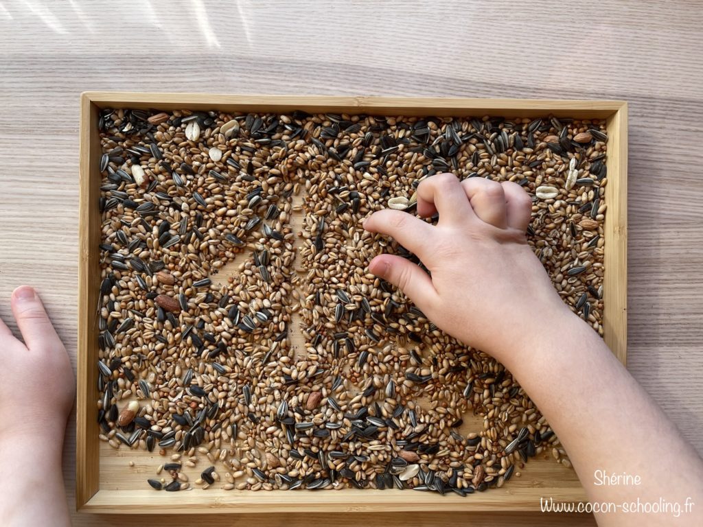 Pour réaliser cet atelier j’ai utilisé du carton, du faux gazon, des graines pour oiseaux, de la paille et de la peinture 10Doigts (dispo ici: https://bit.ly/31F0kdE)