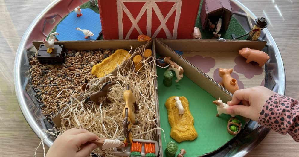 Aujourd’hui c’est mercredi, mes puces vont chez leur papa, je leur ai donc préparé très tôt ce matin un mini monde. Elles aiment tellement pouvoir jouer avec des nouveaux univers, ça me fait vraiment très plaisir de leur construire des choses comme cela éphémère.