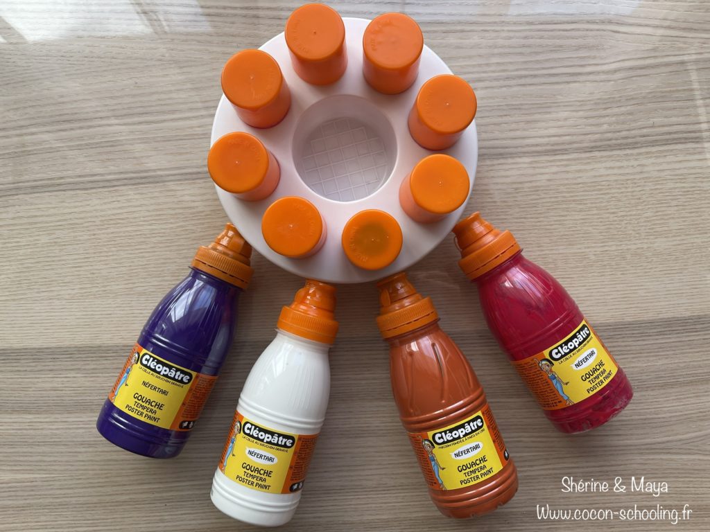 Peintures et pinceaux à pochoir dispo ici: http://www.colles-cleopatre.com/fr/335-lot-de-12-gouache-nefertari-baby-et-palette-et-8-pinceaux-pochoirs.html