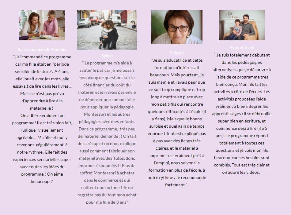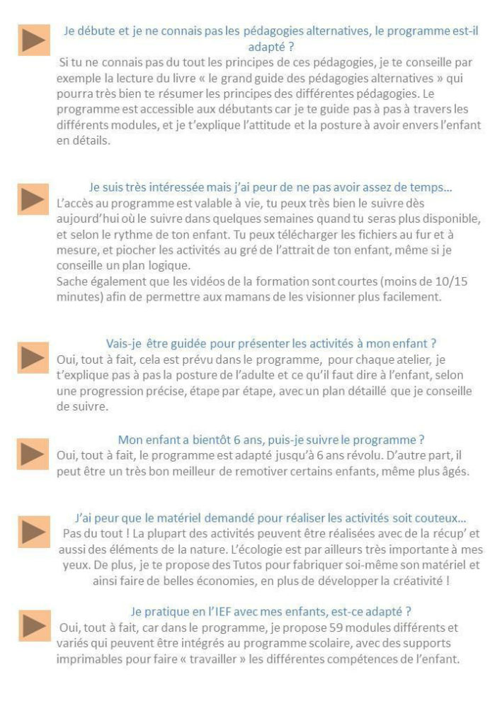 Je trouve ce programme très complet, et je n’ai qu’une hâte c’est de le commencer avec mes puces. Je pense que ça va me faire évoluer dans les pédagogies alternatives et m’ouvrir encore sur d’autre horizons que je ne connaissais pas encore. Il y a pas mal d’exercices proposés de mise en pratique avec pas forcément trop de matériel à acheter. Souvent on peut faire avec ce qu’il y a à la maison. N’hésitez pas à me faire un retour si vous aussi vous alllez tenter la belle aventure !!!