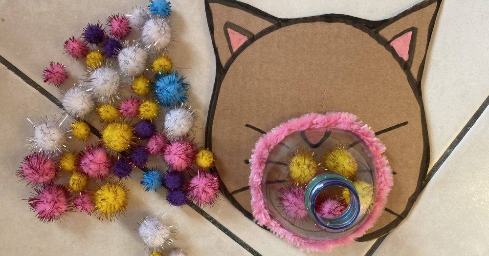 Et voilà pour le coup se sont mes deux filles qui ce sont amusé. Le but est simple il suffit de remplir la bouteille avec les pompons, pour un petit à la main et pour un plus grand avec une pince à cornichon ou une pince à thé.