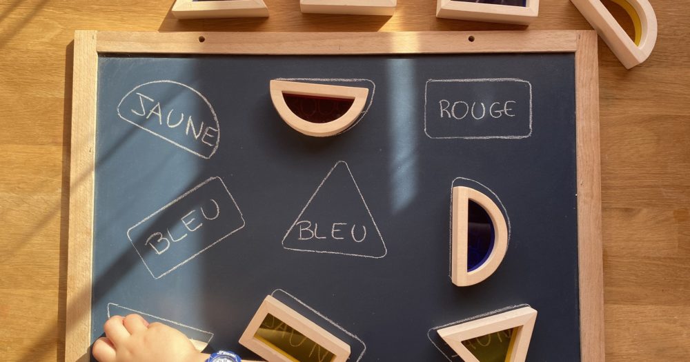 Maya aime beaucoup faire comme sa grande soeur, du coup je lui ai fait un atelier avec des bâtons de glace pour faire des mises en paire, j’ai ajouté une difficulté qui est l’inversion des couleurs.