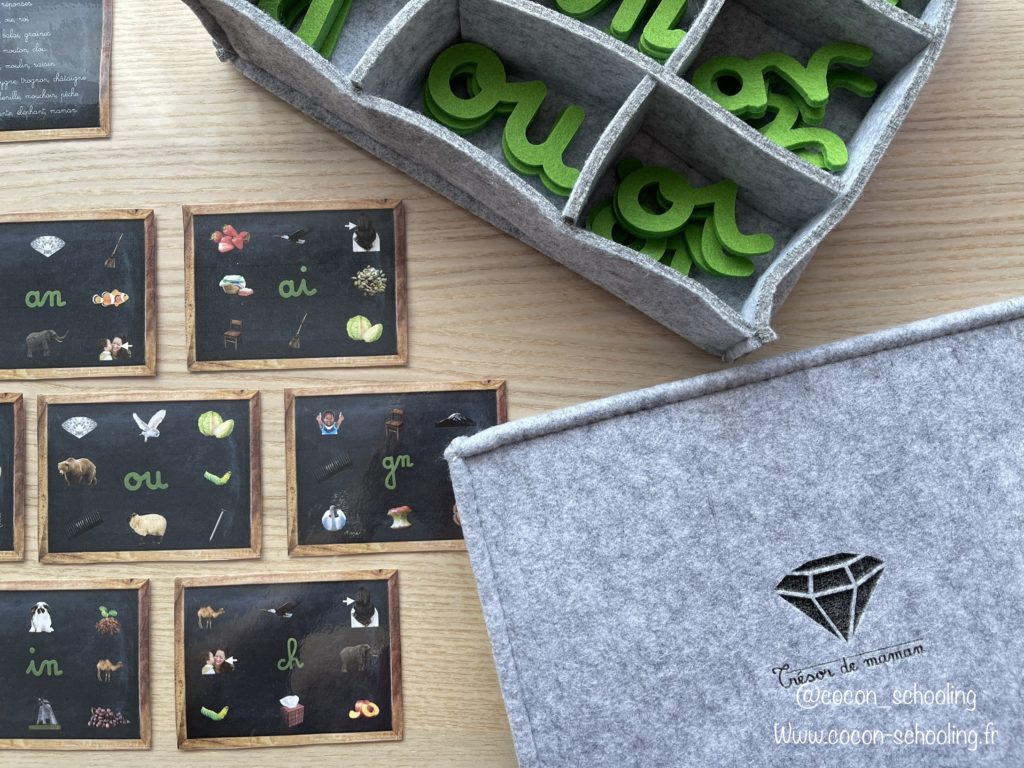 Hello, je ne sais pas par où commencer car je suis tellement fan de nos coffrets Trésor de maman que j’aimerais vous transmettre tout ce que mon coeur ressent. Qualité au top, finition parfaite, et le style est sublime. Voici des coffrets incroyables pour travailler la lecture et l’écriture, J’ai fait des fiches qui vous permettront de faire des ateliers sur les sons complexes.