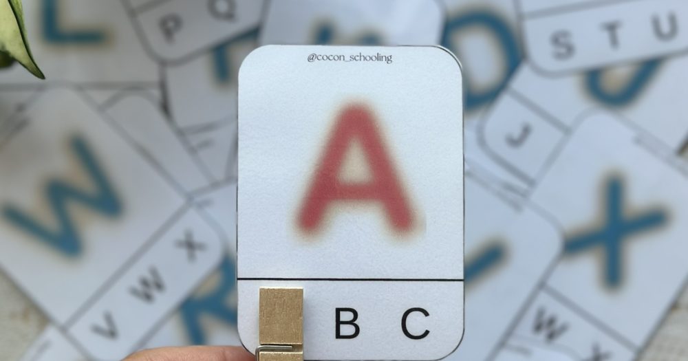 Coucou les cocons, Maya avait beaucoup aimé la version animaux pixel que j’avais faite, je lui ai donc fabriqué un jeu de cartes pour réviser les lettres en flou. Lui donner des choses faciles en ce début d’année la rassure et ça me fait plaisir pour elle. Je vous souhaite une belle rentrée. A bientôt. Tatiana.