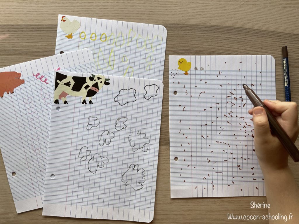 Voici les fiches de graphisme de Shérine, elles font partie de son classeur que l’on remplit petit à petit