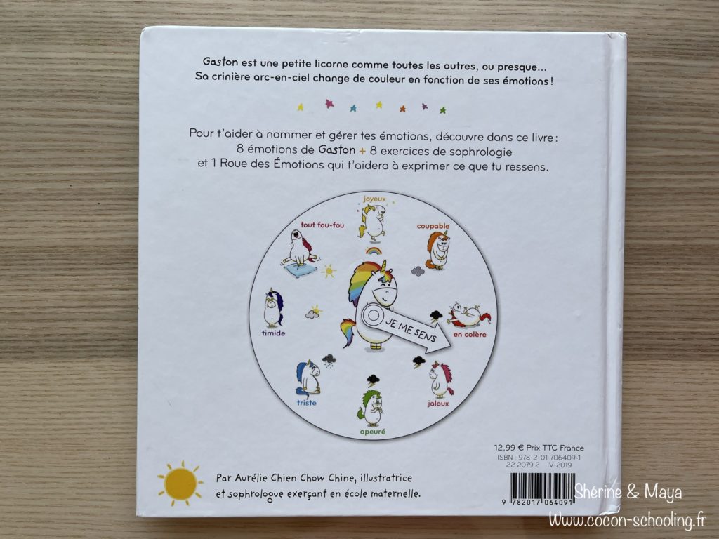 Gaston la licorne, Mes émotions des éditions hachette. Voici le premier livre que j’avais acheté à Shérine il y a 2 ans il me semble, elle l’aime énormément. Il est très bien et facile à comprendre même pour ma petite Maya.