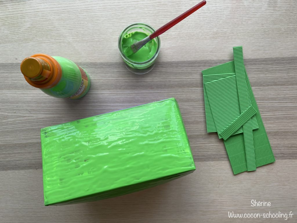 Comme c’est un jeu que l’on garde dans le temps, j’ai proposé aux puces de fabriquer une boite de rangement, cela nous permettra de le mettre avec nos jeux de société.