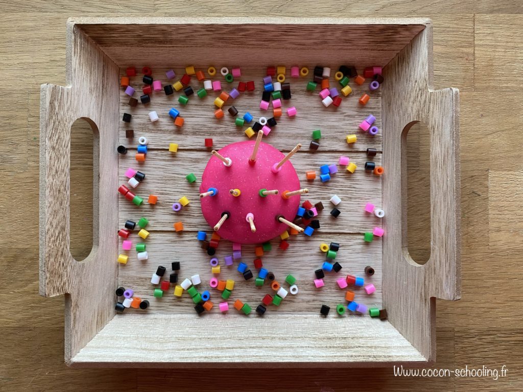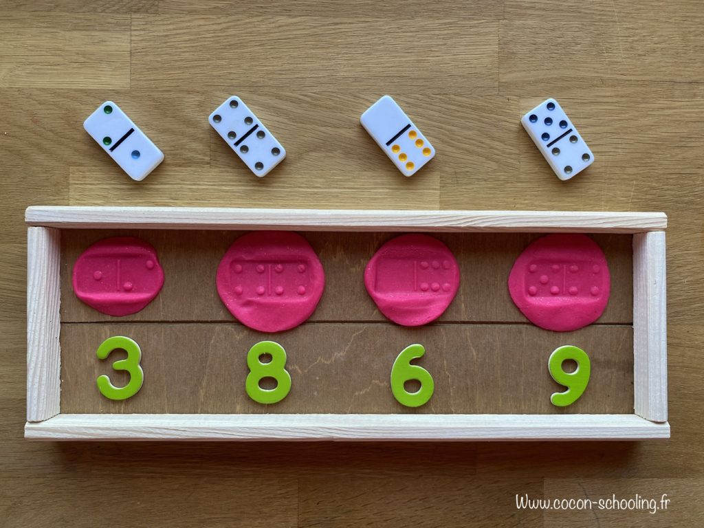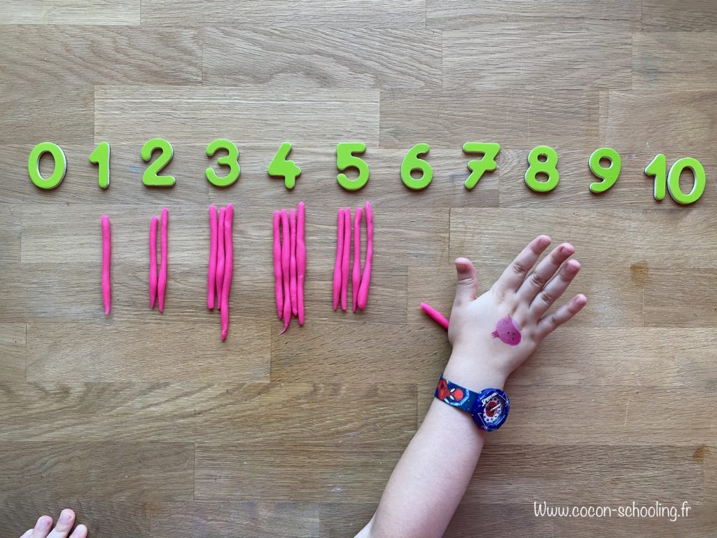 retrouver le bon chiffre à mettre en dessous des formes en pâte à modeler