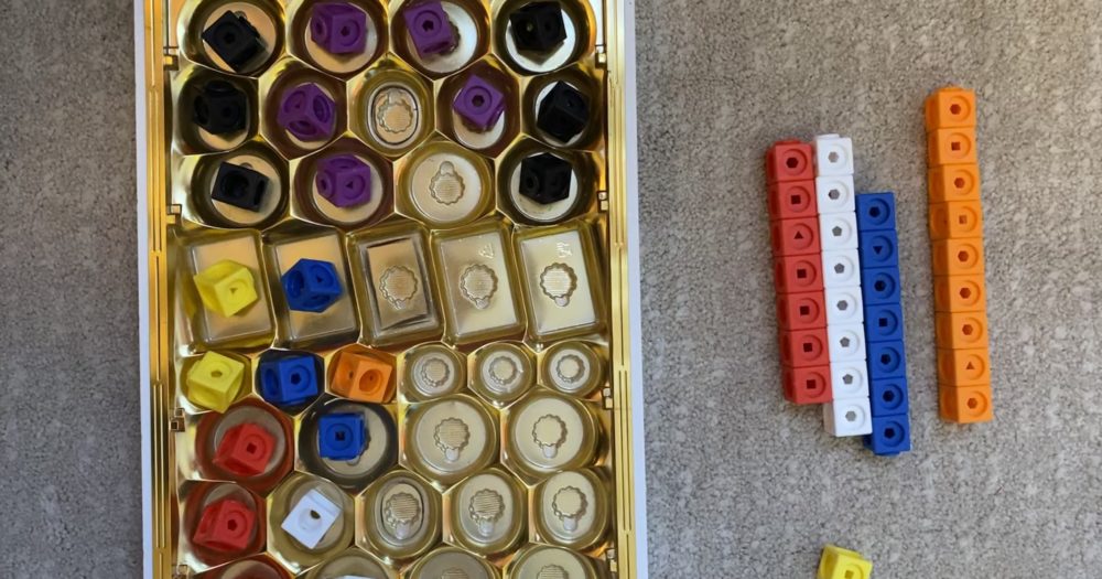 Ici j’ai utilisé une ancienne boite de chocolat que j’avais conservée convaincue qu’elle nous servirait avant de la jeter.