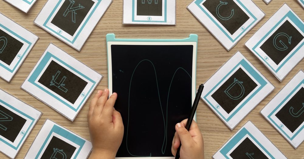 Nous avons reçu une tablette de la marque Buki à tester, et je vous le dis: elle est validée! Shérine et Maya l’ont énormément aimée, elle est facile à utiliser et légère. J’ai préparé un pdf avec l’alphabet pour Maya qui commence à écrire.