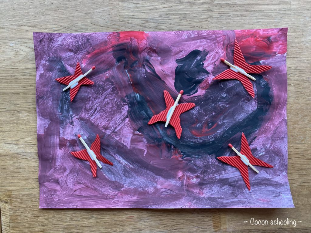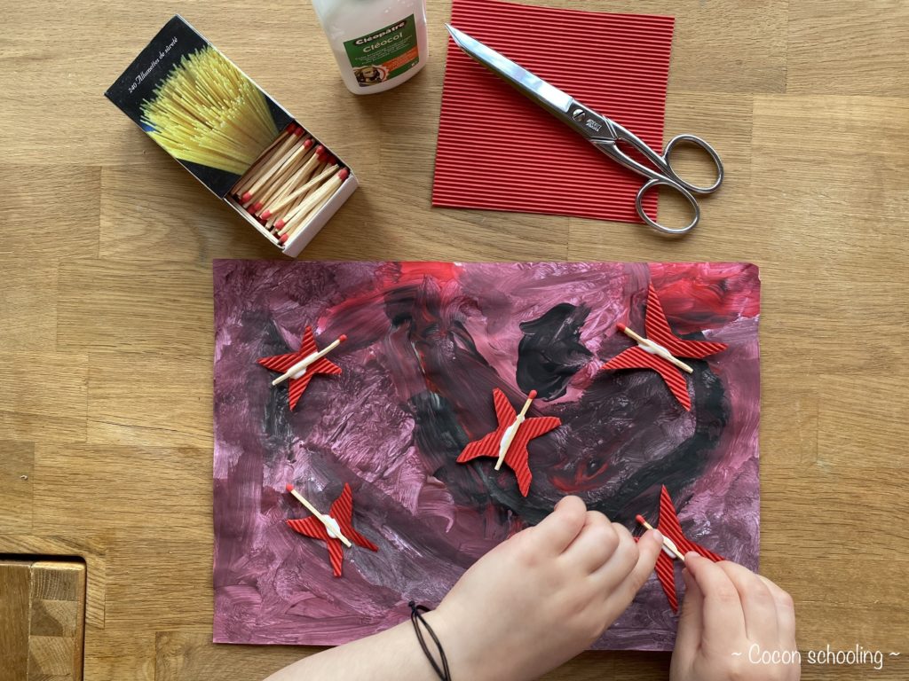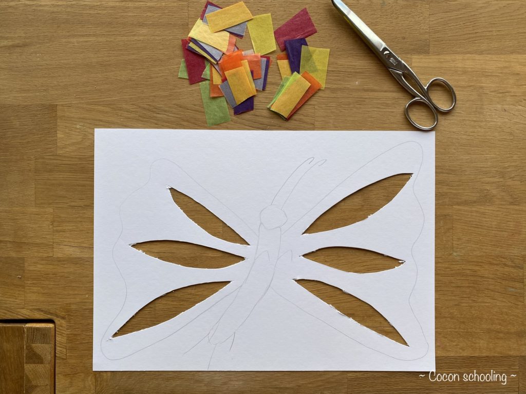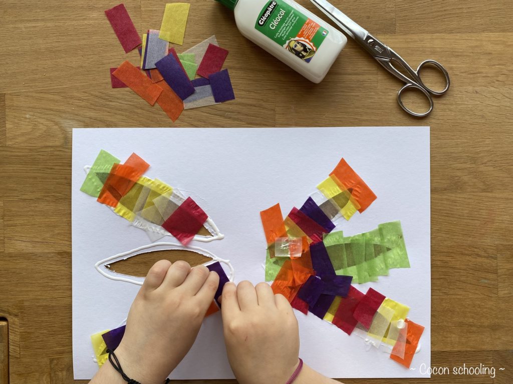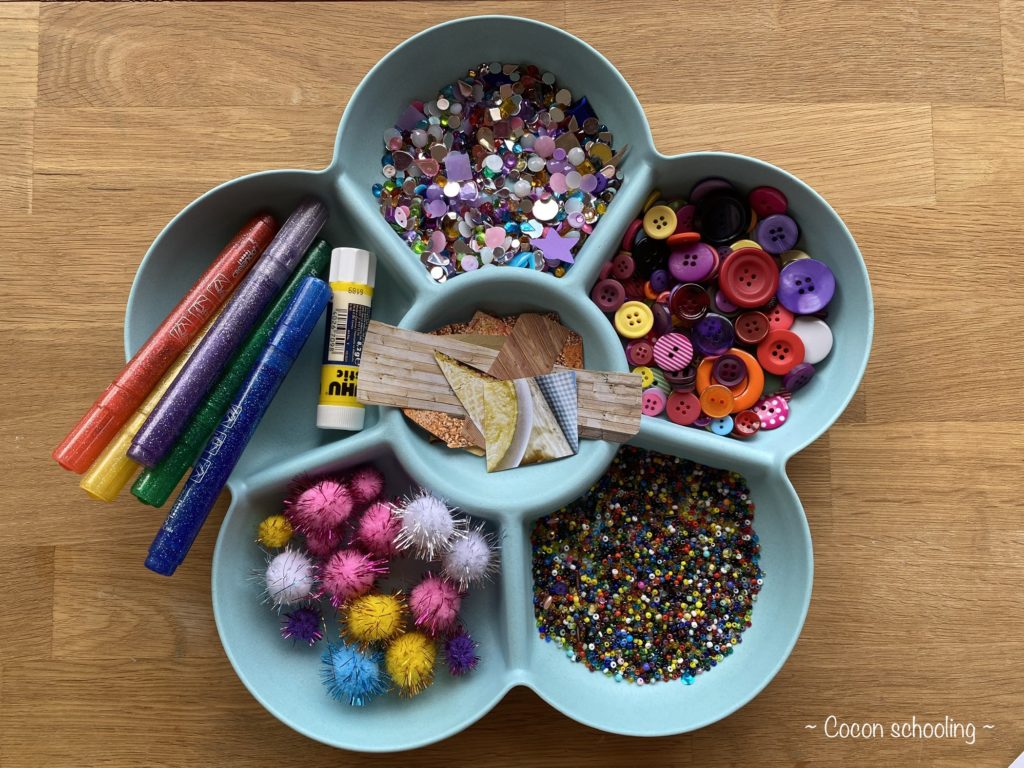 Ici elles ont réalisé une décoration sur des papillons achetés chez Truffaut, le plateau d’activité, je l’ai acheté chez Hema, un vrai coup de coeur.