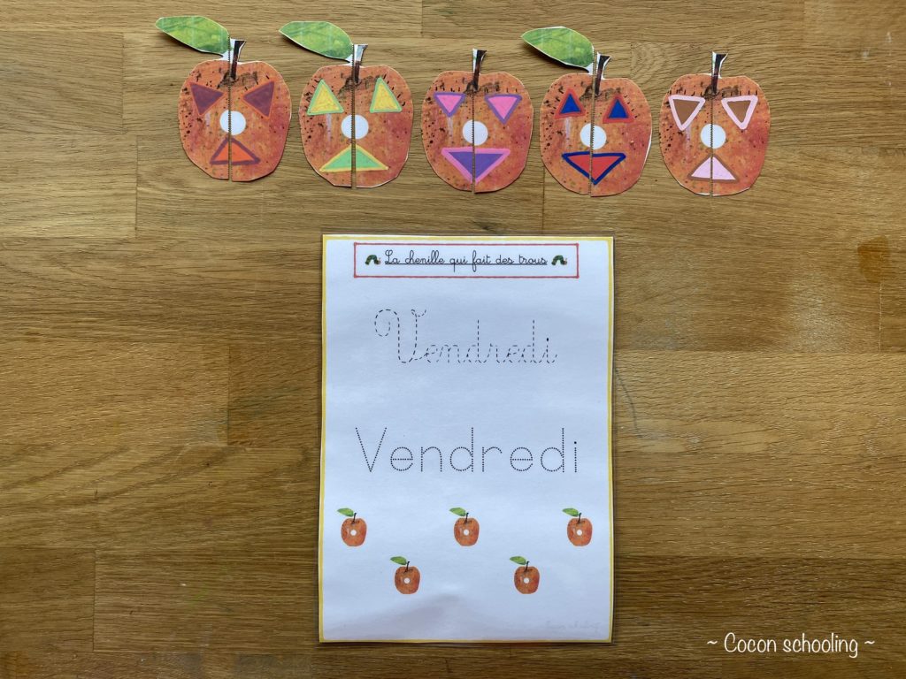 Vendredi la chenille a croqué dans cinq oranges, elle y a fait cinq trous. Mais elle a encore faim.