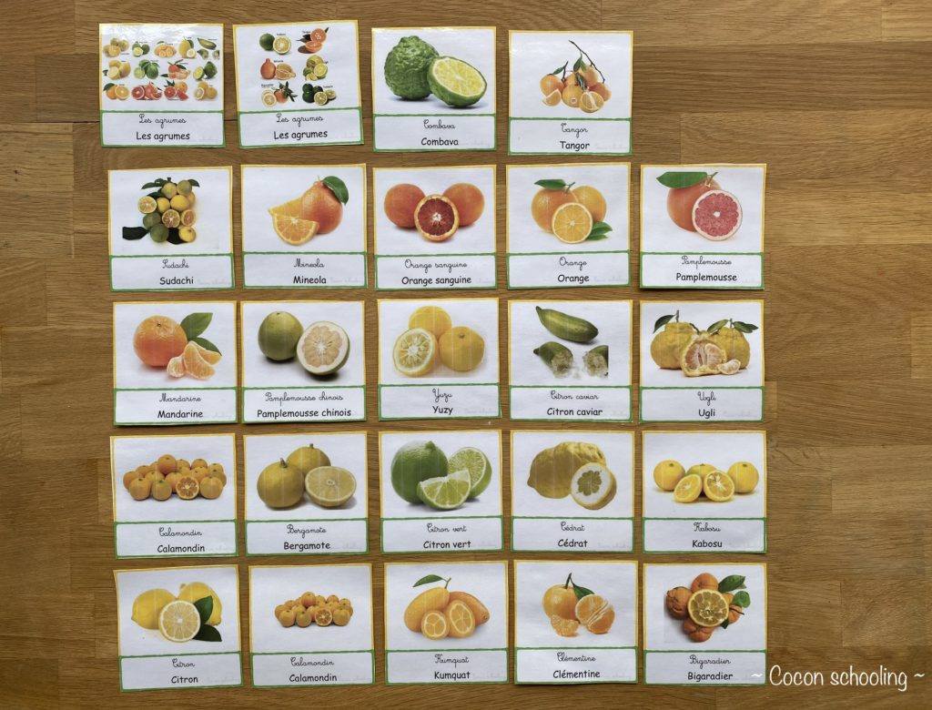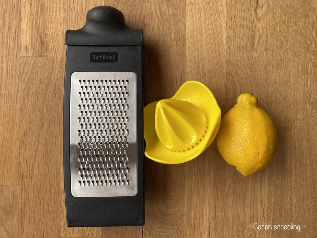 Voici les cartes de nomenclatures, j’en ai mis le plus possible mais il y en a sûrement d’autres. Nous avons suite à la lecture des cartes fait du jus de citron et râpé du zeste, ça sentait bon dans tout l’appartement, c’était super agréable.