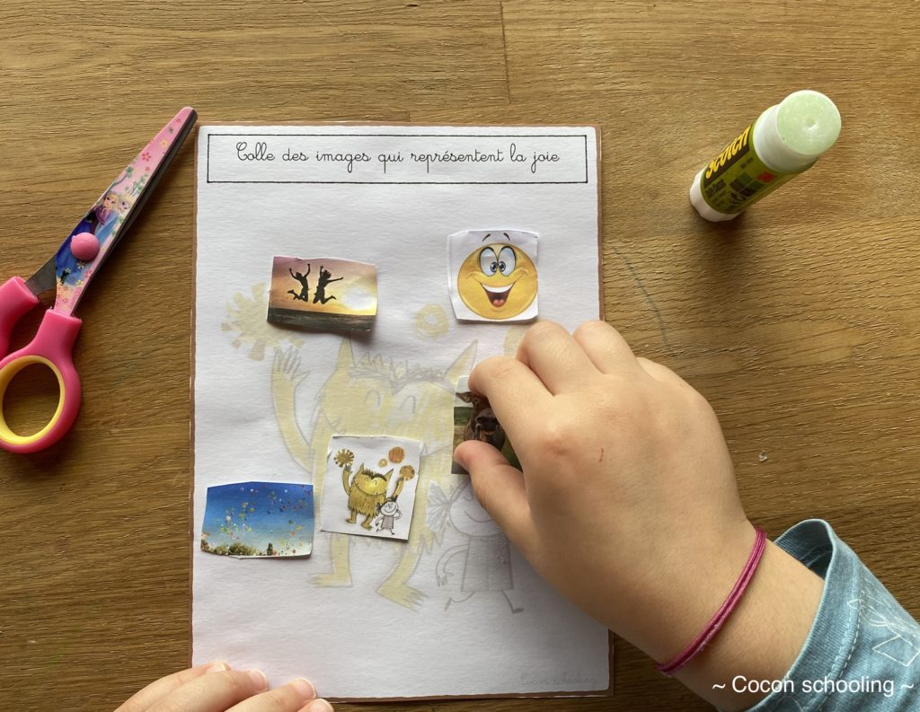 trouver les bonnes émotions parmi la liste, les découper et les coller