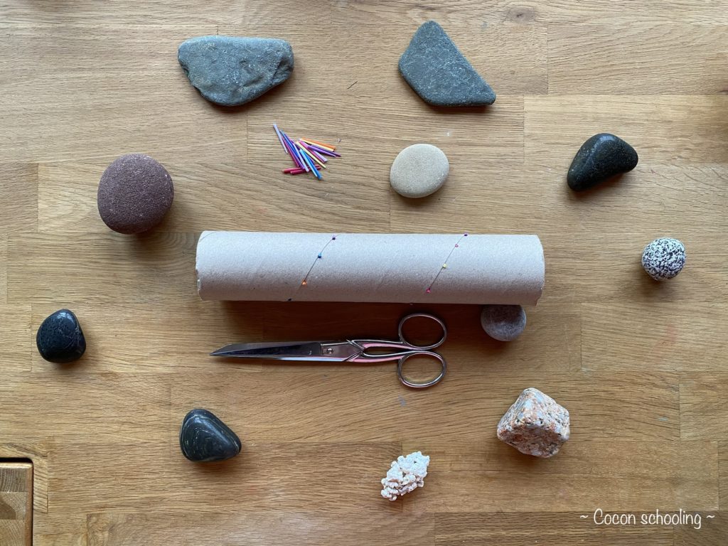 avec une punaise, faire des trous sur le trais qui fait une spirale au tour du tube