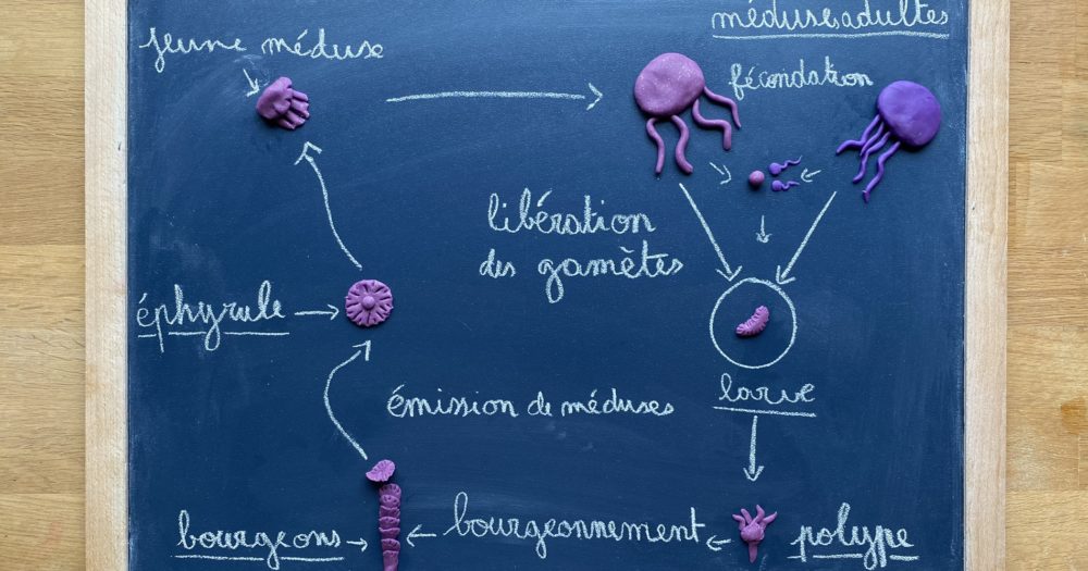 Voici notre cycle de vie sur la méduse en pâte à modeler.
