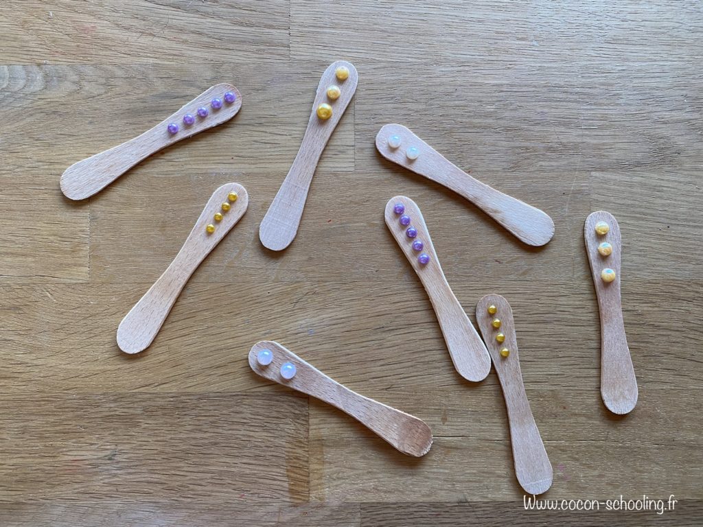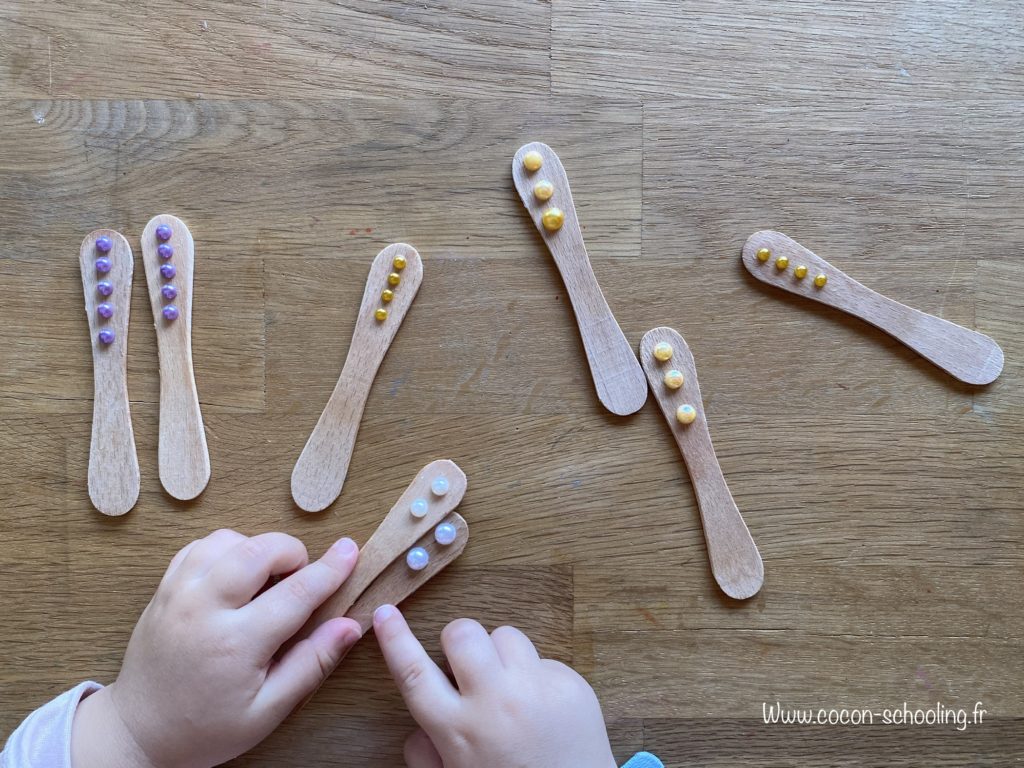 Pour la mini puce, jeu de mise en paire, en jouant sur le coté tactile avec des perles en relief.