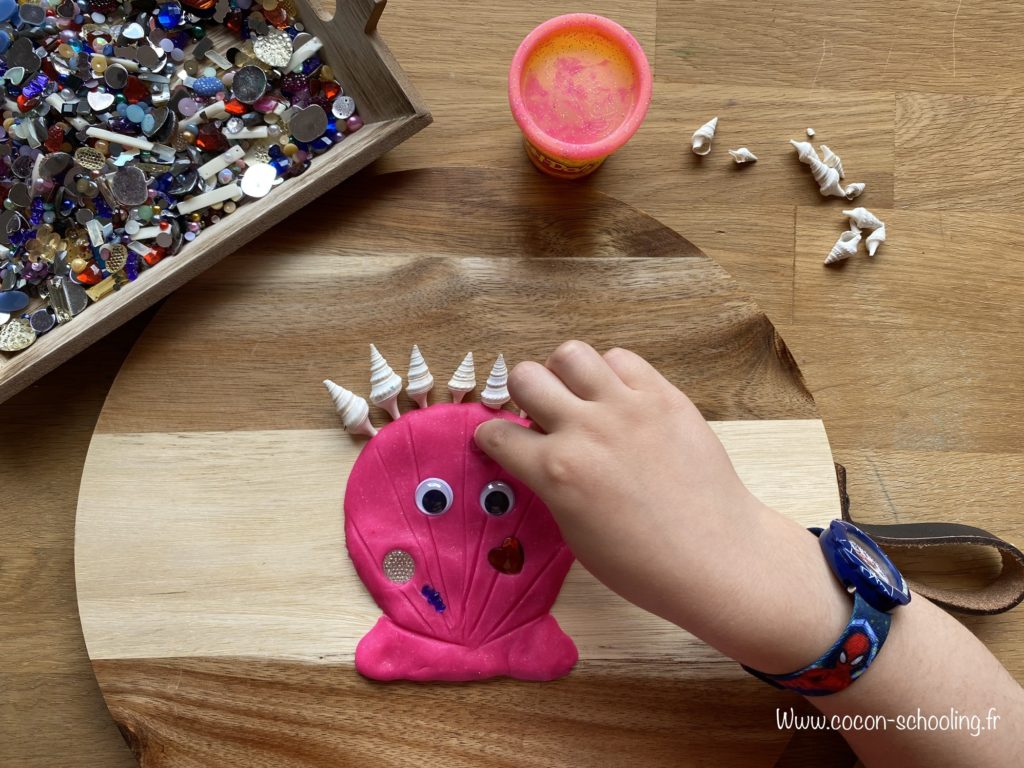 Vous le savez maintenez, on aime beaucoup la pâte à modeler!!! Donc voila, encore une idée rapide à réaliser, décorer un joli coquillage.