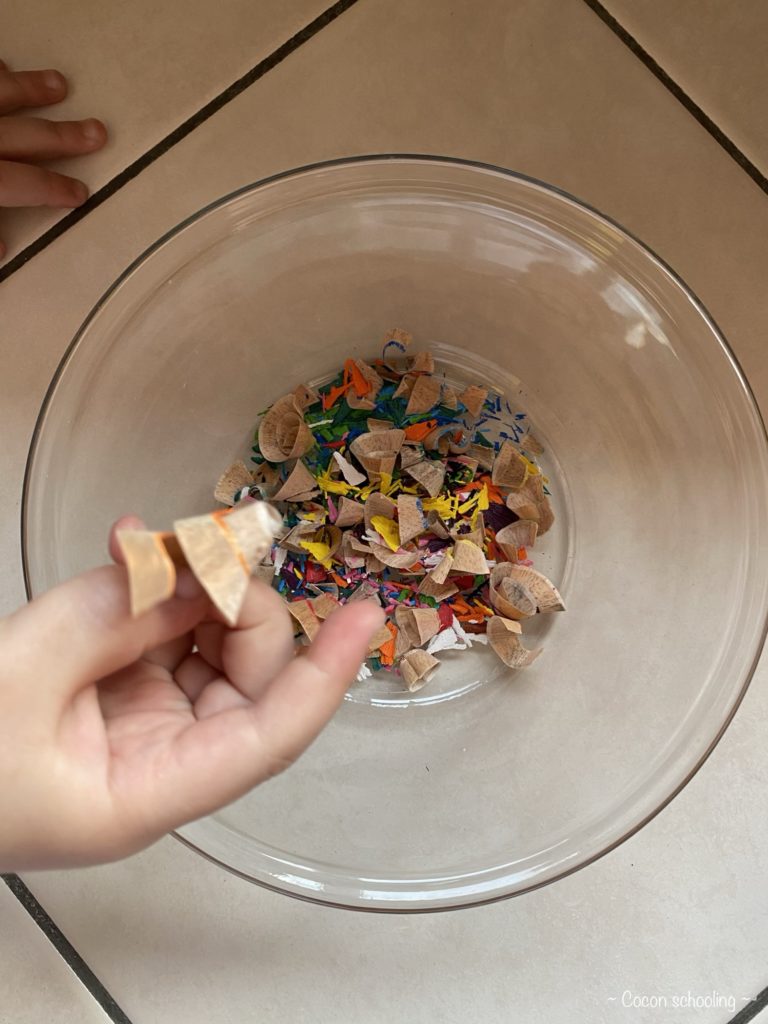 Nous avons taillé tout les crayons et ce fut une réaction commune: WAAAAA c’est beau