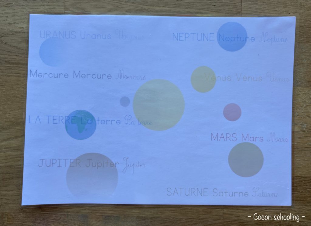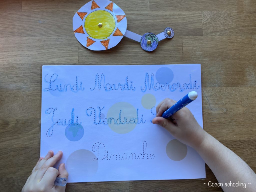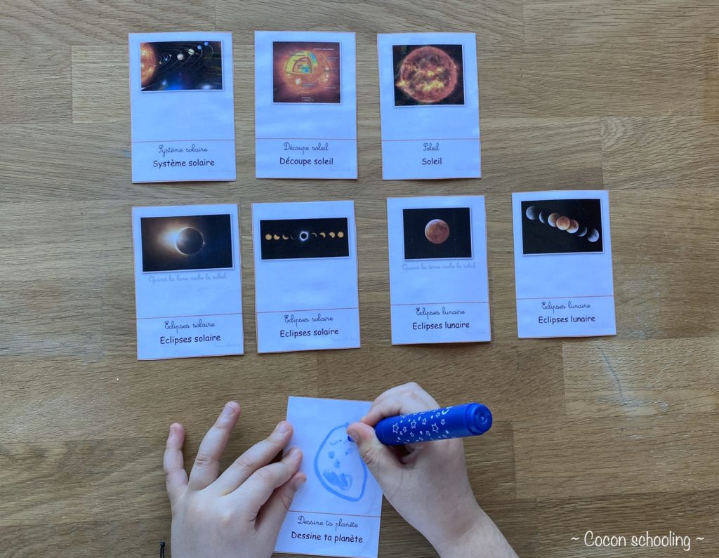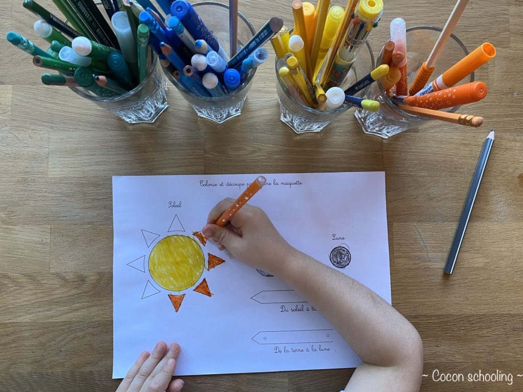 Le mobile permettant à ma fille de comprendre comment la terre tourne autour du soleil et la lune au tour de la terre l’a beaucoup aidé. En faisant elle même pivoter les modules elle a pu très bien assimiler qui fait quoi.