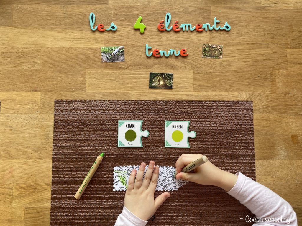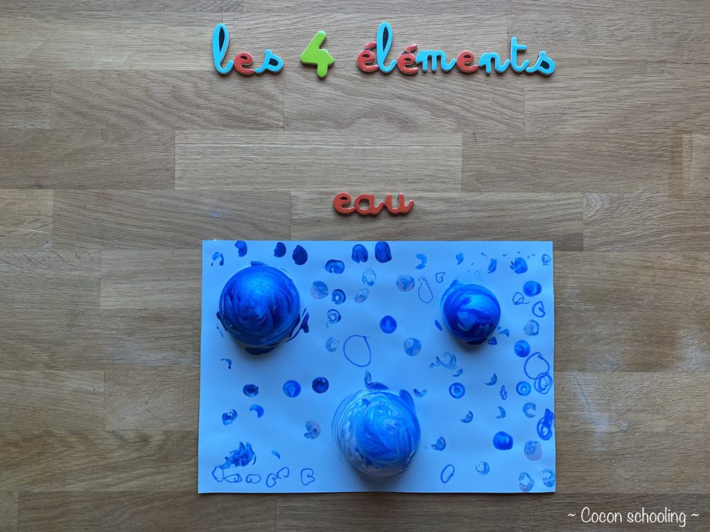 Nous avons travaillé les 4 éléments sur 4 jours, chaque jour son élément, ce qui nous a permis de bien approfondir le sujet.