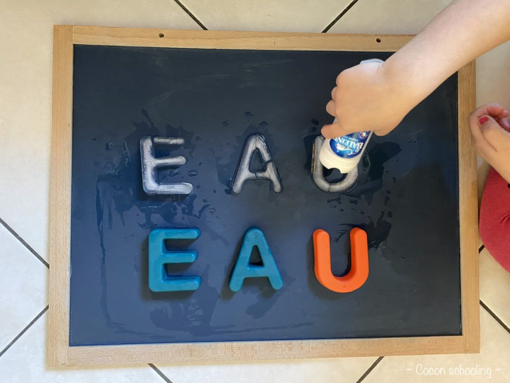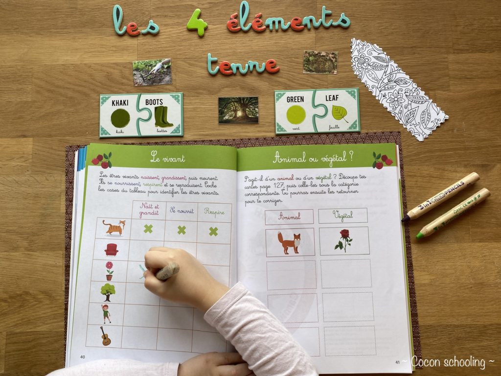 L’eau: nous avons utilisé comme support pour tous les éléments le livre « Mon grand Montessori de découverte des science ». Vous pouvez le trouver ici: https://www.cultura.com/mon-grand-cahier-montessori-d-initiation-aux-sciences-9782035967480.html