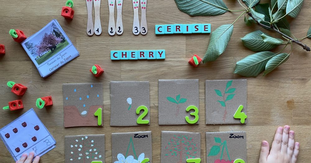 J’ai proposé à ma Shérine des cartes DIY du cycle de vie de la cerise à remettre dans l’odre.