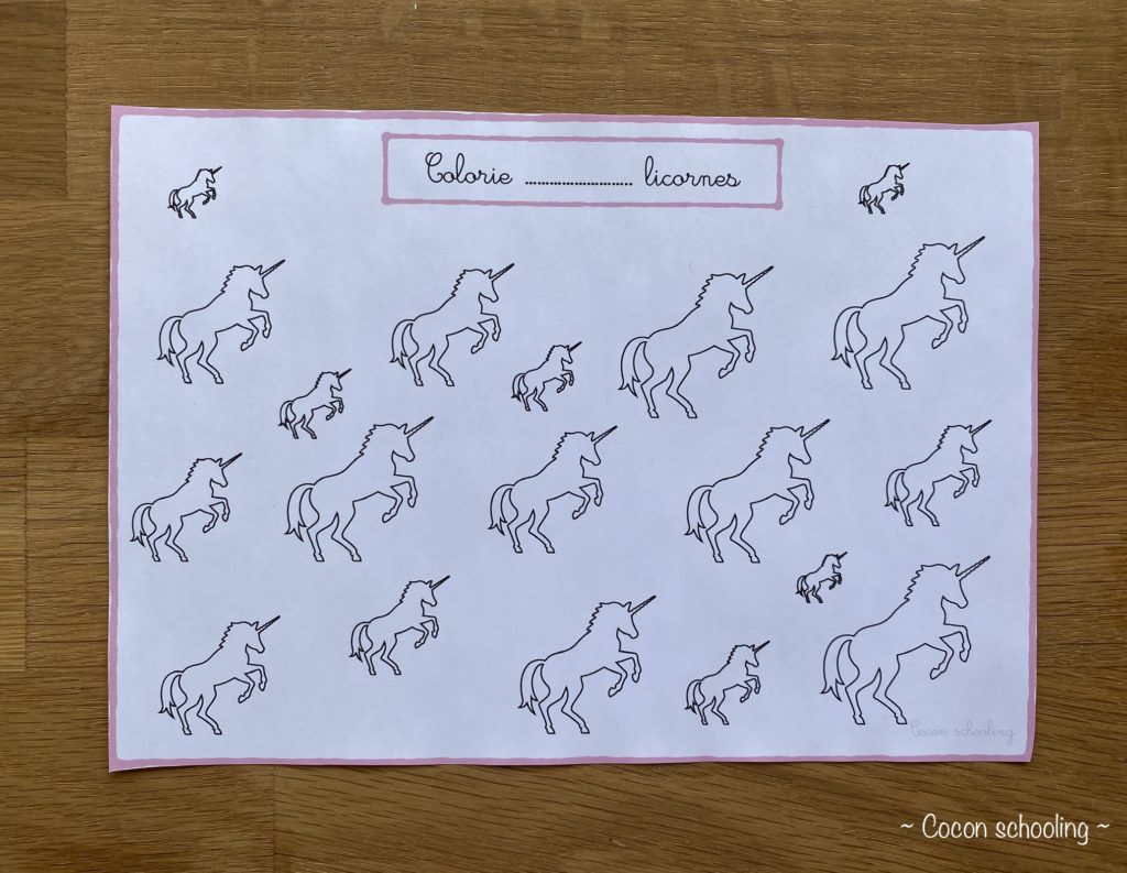 Colorier le bon nombre de licorne