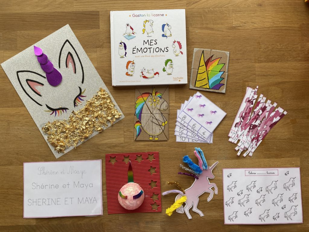 Une journée riche en paillettes, ce mardi était vraiment très sympa, nous avons travaillé sur la licorne car mes deux princesses aiment beaucoup Gaston la licorne. Du coup je leur ai fait un puzzle chacune et quelques activités sur ce thème.