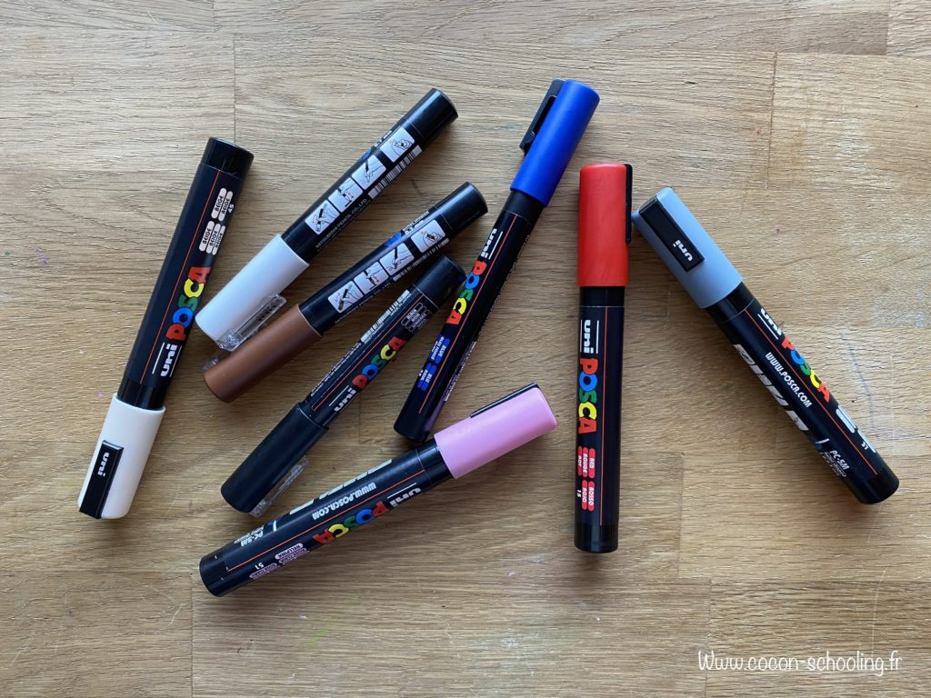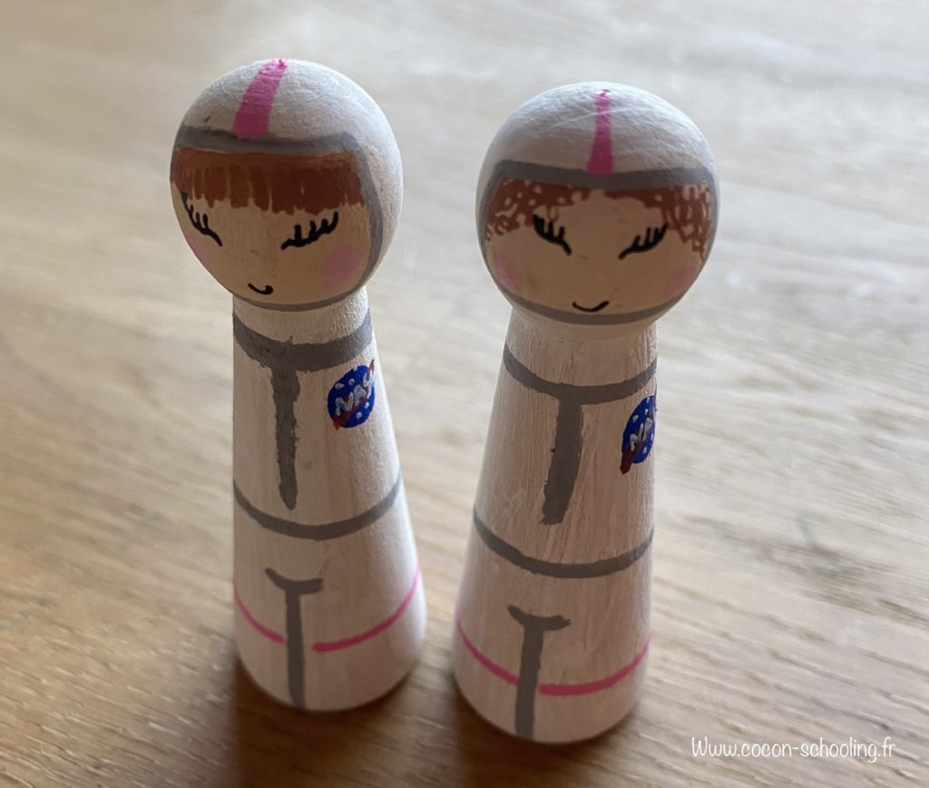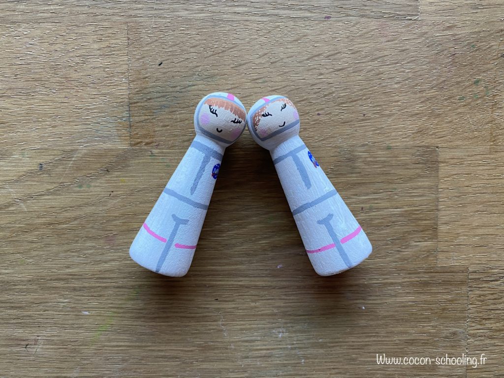 Pour réaliser les deux poupées de bois, j’ai acheté des supports vierges chez Truffaut mais il y en a vraiment partout maintenant, Amazon etc… je les ai ensuite peints au posca.