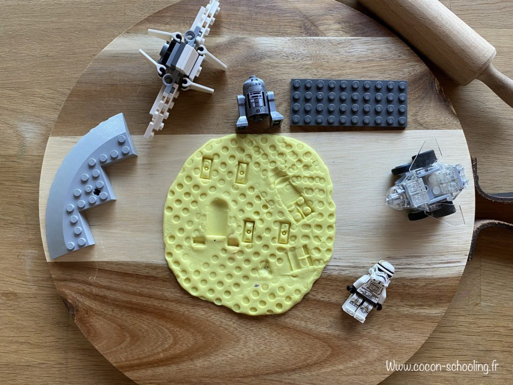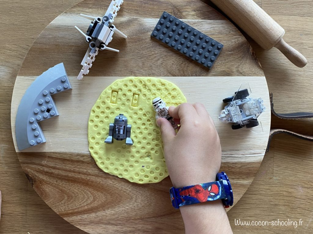Dans l’espace nous avons rencontré des personnages très rigolos de la série Star Wars hihihi, ma grande s’est amusée à faire de belles empreintes dans la pâte à modeler.